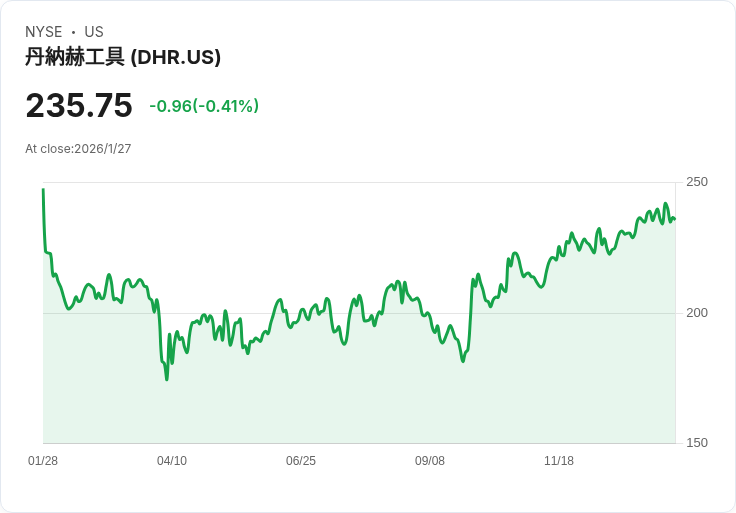 新聞:丹哈公司(Danaher Corporation, DHR)定於1月28日美股開盤前發布2025年第四季的財報。根據市場共識,每股盈餘(EPS)預估為2.19美元,較去年增長2.3%;而營收則預計達到68.1億美元,年增4.8%。在過去兩年中,丹哈公司的每股盈餘預測準確率高達88%,且營收預測更是100%超出預期,顯示其穩健的業務表現。