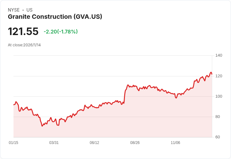儘管目前GVA股價在盤後交易中小幅下跌至121.55美元,但市場分析師仍看好Granite未來的業務前景,特別是在有機成長率持平8%的情況下,投資者應密切關注該公司的發展動向。隨著基礎建設需求的增加,Granite的商機似乎尚未結束,未來或將迎來更大的成長契機。