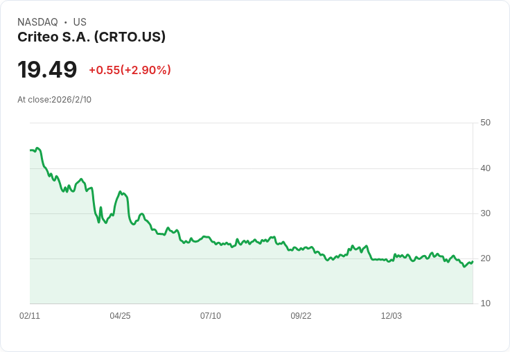 Criteo S.A. 公佈第四季財報,非GAAP每股盈餘為1.30美元,但年營收下降2.2%。2026年展望顯示增長乏力。