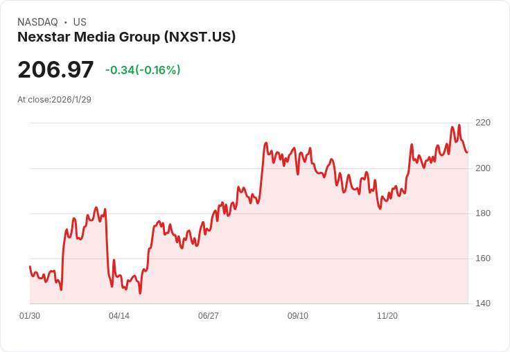 Nexstar Media 公佈每股 $1.86 的季度股息,預期收益率達 3.59%,並於 2 月 27 日支付。