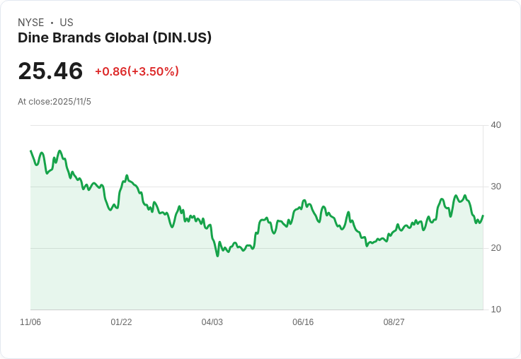 Dine Brands Global 在2025年第三季營收雖增至216.2百萬美元,但淨利卻從18.5百萬美元跌至7百萬美元,顯示出經營挑戰。