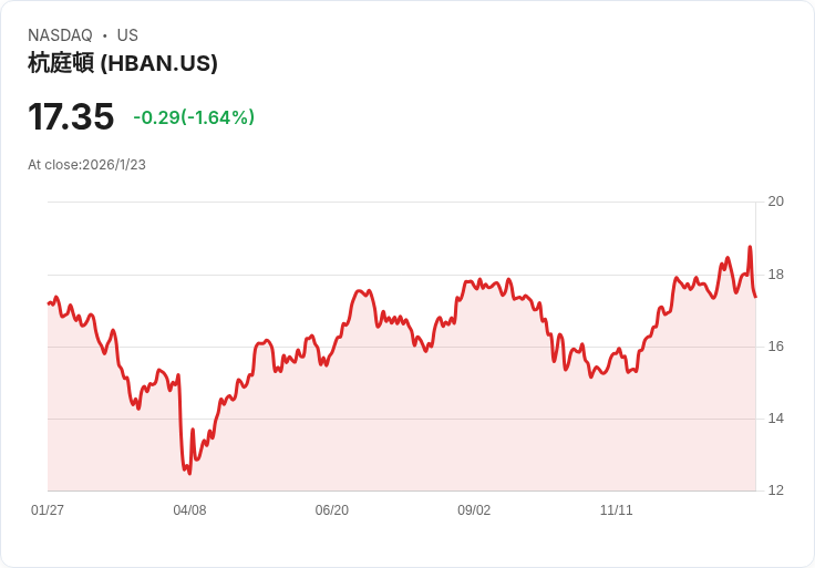 Huntington Bancshares Incorporated是一家美國地區性銀行控股公司,總部位於俄亥俄州哥倫布市。該公司成立於1866年,主要透過其子公司Huntington National Bank提供多樣化的金融服務,包括商業和消費者銀行、房地產貸款、裝置租賃、資本市場服務等。Huntington以其客戶為中心的經營模式和強大的數字能力而聞名,致力於成為全國領先的以人為本的銀行。