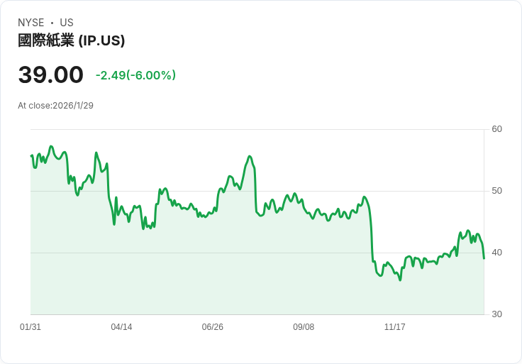 隨著2026年一月接近尾聲,企業財報季節逐漸升溫,投資者對材料股票的關注度也在提升。根據最新資料,國際紙業公司(IP)成為過去一個月表現最差的材料股,其量化評級僅為2.72(持有),並且是榜單上唯一一檔負增長的股票,跌幅達到-2.16%。
