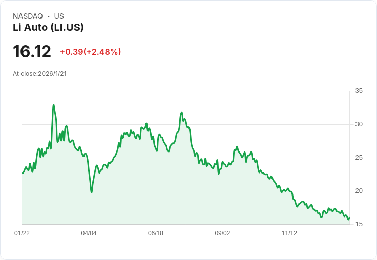 麥格理將理想汽車的評級維持在「表現不佳」,並將目標價從17美元降至15美元,指出競爭激烈及成本上漲影響獲利。