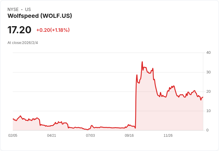 在最新的財報發布後,Wolfspeed(WOLF)股價在週三盤後交易中驟降9%。該公司截至12月28日的2026財年第二季報告顯示,每股調整虧損達5.78美元,遠高於市場預估的0.74美元。其季度營收為1.685億美元,同比下降6.6%,也低於預期的1.7億美元。