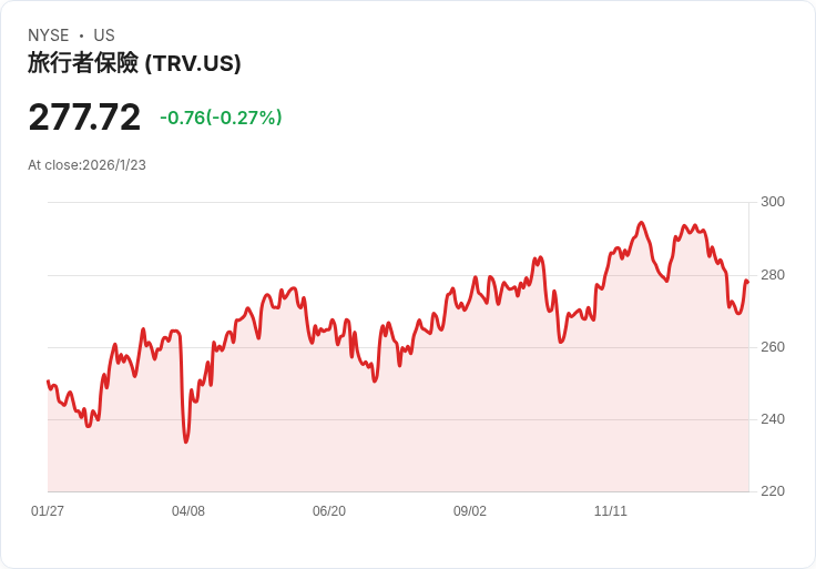 Travelers Companies, Inc.是一家美國領先的財產和意外險公司,提供多樣化的商業、個人和專業保險產品。公司致力於透過創新和技術投資來提升其市場地位,並持續專注於風險選擇、定價和條款條件的紀律性執行。Travelers在保險行業中以其穩健的財務表現和卓越的客戶服務而聞名。