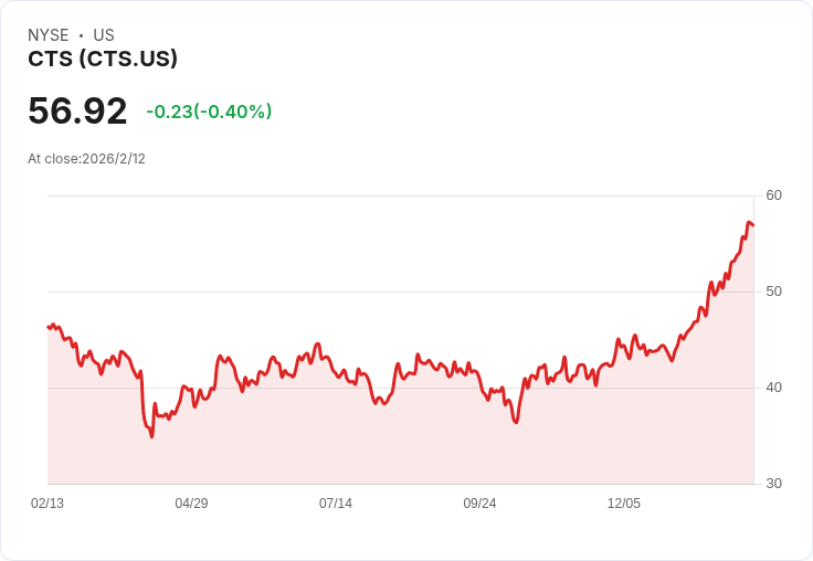 CTS公司宣佈將發放每股$0.04的季度股息,並提供2026年營收預測,顯示出穩健的財務表現。
