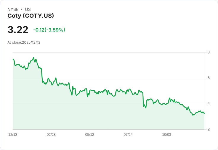 Coty因主要股東JAB控股將進行高層人事調整,引發市場擔憂,股票週五一度下跌3%。該公司急需扭轉55%的市值損失。