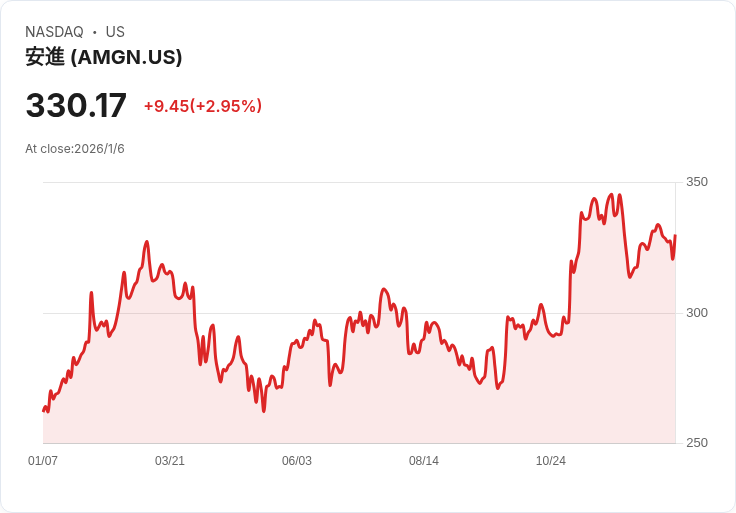 瑞士銀行 UBS 最近宣佈將生技公司 Amgen 的評級從中立提升至買進,主要基於其兩個晚期開發的藥物——針對肥胖症的 MariTide 及降低心血管風險的 Olpasiran。該行同時將 Amgen 的目標股價從317美元上調至380美元,相較於週二收盤價有15%的上漲空間。