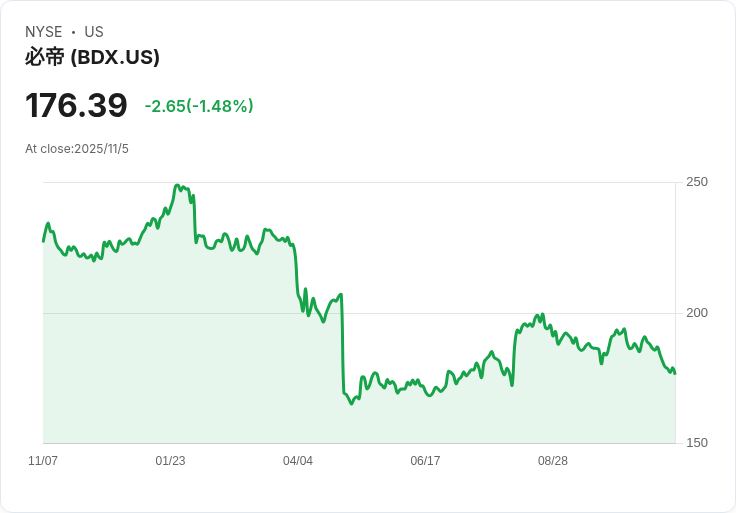 Becton, Dickinson and Company (BDX) 是一家全球領先的醫療技術公司,致力於改善醫療保健的安全性和效率。公司提供廣泛的產品和服務,包括醫療裝置、診斷解決方案和生命科學研究工具。BDX 的業務分為五個主要部門:醫療必需品、連接護理、生物製藥系統、介入治療以及生命科學。公司以其創新能力和市場領導地位而聞名,並持續致力於推動全球健康的進步。