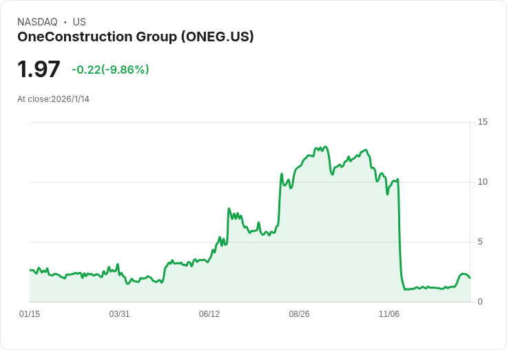 OneConstruction Group Limited 公佈2025年上半年財報,營收達2780萬美元,但淨虧損10萬元,顯示出經營困境。
