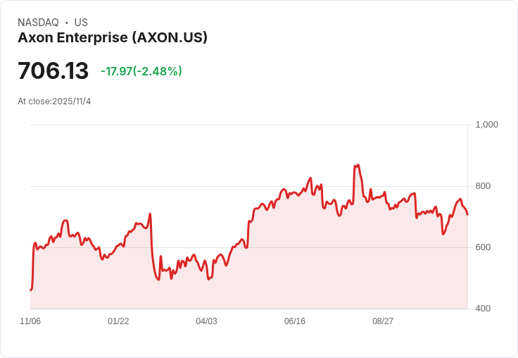 Axon Enterprise因第三季獲利未達市場預期,股價重挫11%。公司面臨關稅影響,但仍提升全年營收展望。