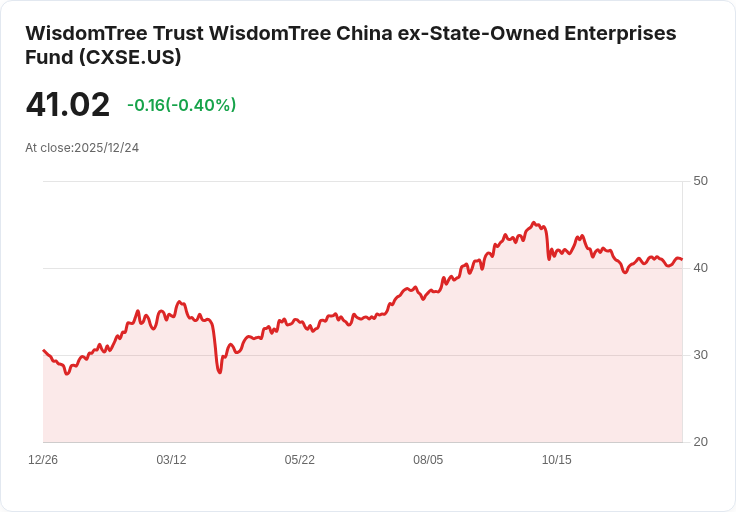 WisdomTree中國非國有企業基金(CXSE)宣佈每股$0.3284的季度股息,預計於12月30日支付,登記截止日為12月26日。