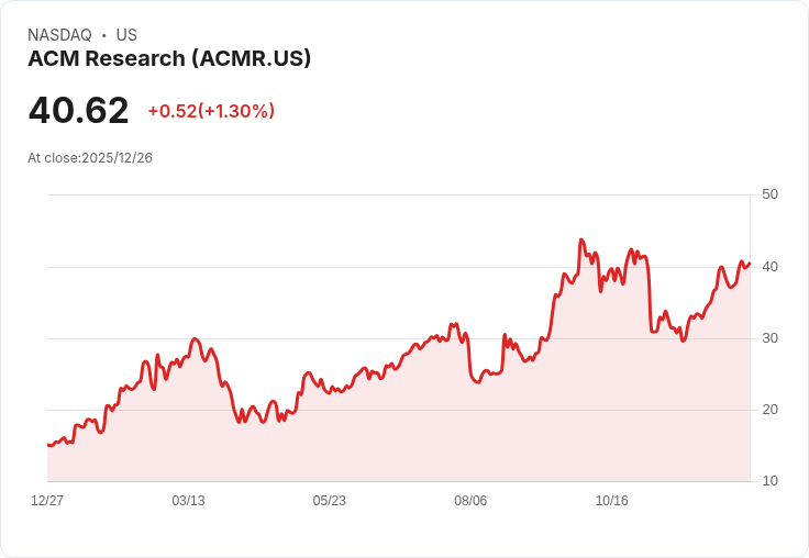 根據最新資料,ACM Research在2025年的半導體材料股票中表現最佳,YTD漲幅高達165.56%,成為市場焦點。