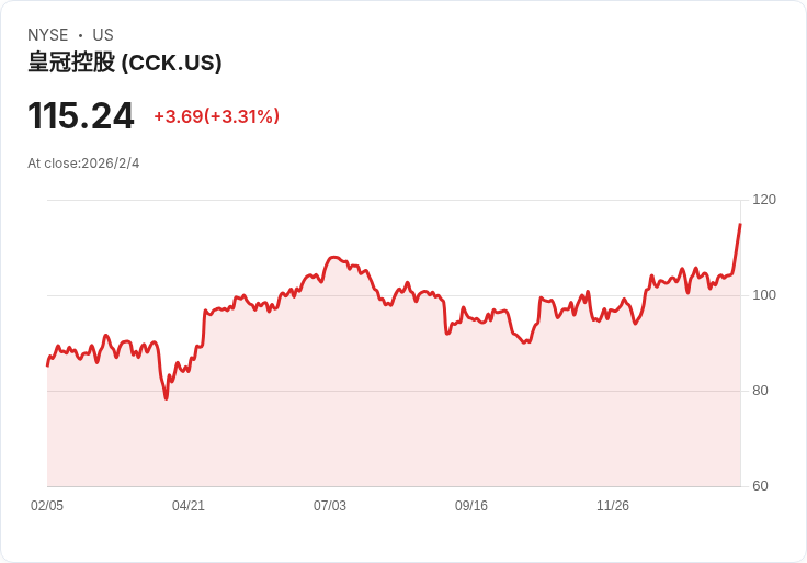 冠狀控股(Crown Holdings, NYSE: CCK)在最新的Q4 CY2025財報中表現出色,營收達到31.3億美元,年增率為7.7%,超過華爾街預估的30.2億美元。調整後每股盈餘(EPS)為1.74美元,較分析師預測的1.70美元高出2.2%。然而,對於即將到來的2026財年的每股盈餘指引為8.10美元,輕微低於市場預期,引發投資者擔憂,導致股價下跌1.7%至113.23美元。