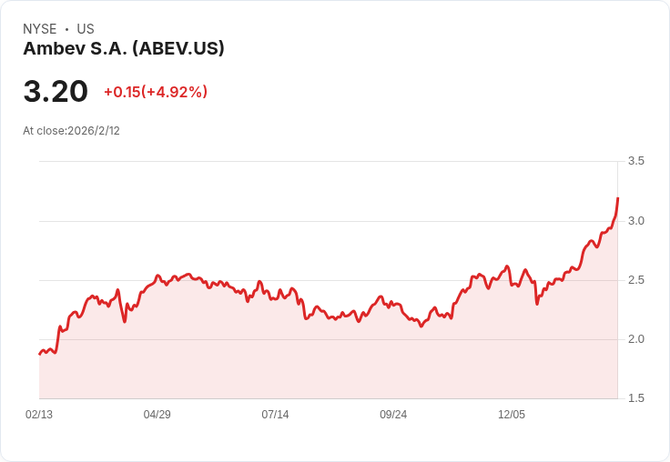 Ambev SA(NYSE: ABEV)於2025年第四季的財報中亮眼表現,EBITDA正常化邊際擴張50個基點,達到33.4%。該公司報告顯示,其每公升淨收入增長7.5%,同時也分配了約200億雷亞爾的股東回報,創下公司歷史新高。儘管面臨天氣不佳影響啤酒消費,但Ambev仍成功在高階及超高階市場維持領導地位。