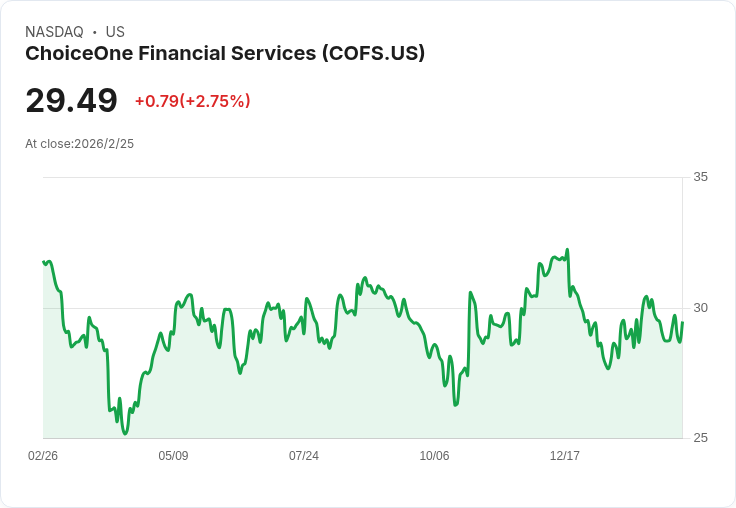 ChoiceOne金融服務宣佈每股$0.29的季度股息,預期收益率達3.93%,將於3月31日支付。