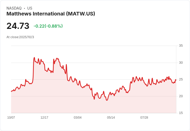 馬修斯國際公司(NASDAQ:MATW)是一家美國企業,涉足工業技術、品牌解決方案及紀念服務等多個領域。近期,公司管理層致力於為長期穩定增長重新調整投資組合,並著重於提升利潤率、緊縮成本以及降低債務,特別是在完成SGK出售後。