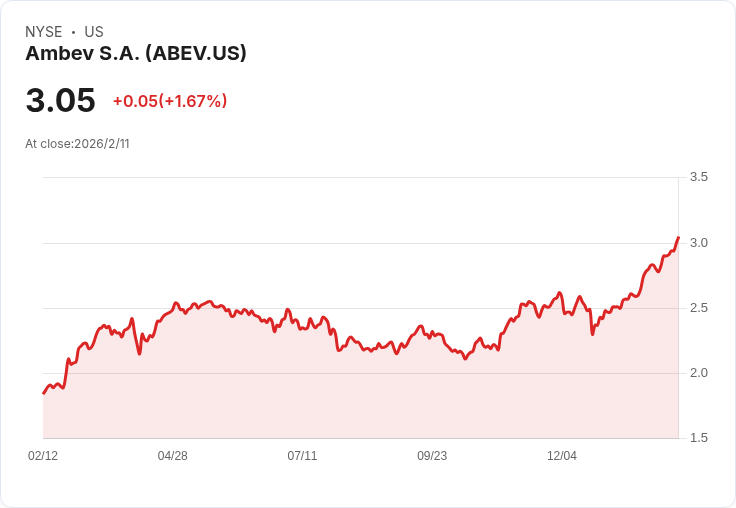 安貝夫(Ambev)近日發布了2025年第四季的財務報告,引起市場關注。該公司報告顯示,其每股非GAAP收益為R$0.28,與市場預期相符;而營收則達到R$24.81億,較去年同期下降8.2%,但仍超出市場預測210萬。這一表現引發分析師和投資者的廣泛討論。