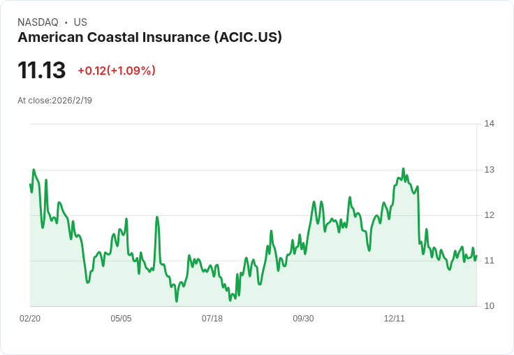 美國沿海保險公司(American Coastal Insurance Corporation, ACIC)近日公佈了其2025年第四季的財報,顯示出強勁的表現。該公司報告每股盈餘為0.53美元,較市場預測高出0.08美元;同時,營收達到8610萬美元,比去年同期增長9%,也超過分析師預期的8690萬美元,這一結果使得公司股價上漲了1.36%。
