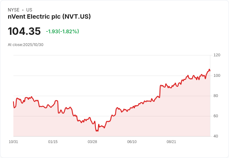 在最新發布的第三季度財報中,nVent Electric (NVT) 表現亮眼,非GAAP每股盈餘為0.91美元,超出市場預期的0.88美元。該公司的營收達到10.5億美元,同比增長34.3%,也高於預測的10.4億美元。值得注意的是,nVent 的持續經營現金流達到2.72億美元,較去年增長72%;自由現金流則攀升至2.53億美元,增幅達77%。