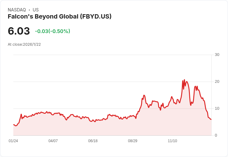 法爾肯全球(Falcon's Beyond Global, Inc.)的股票在週五交易中強勁反彈,漲幅超過15%,收於6.96美元,此前該公司已連續11個交易日下跌,並且在16個交易日中有15天以較低價格收盤。儘管如此,自去年12月29日以來,該股已累計下跌59%。這一情況引發投資者對公司的未來表示擔憂。