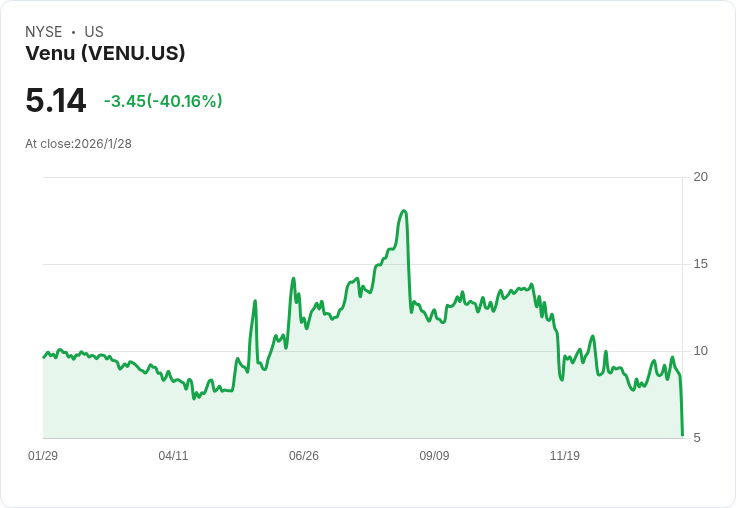 在近期金融市場波動不斷的背景下,Venu Holdings (VENU) 宣佈終止其原訂於1月27日進行的7500萬美元公共股票發行。公司管理層表示,當前的市場環境無法提供對股東最有利的發行條件,因此決定撤回該提案。