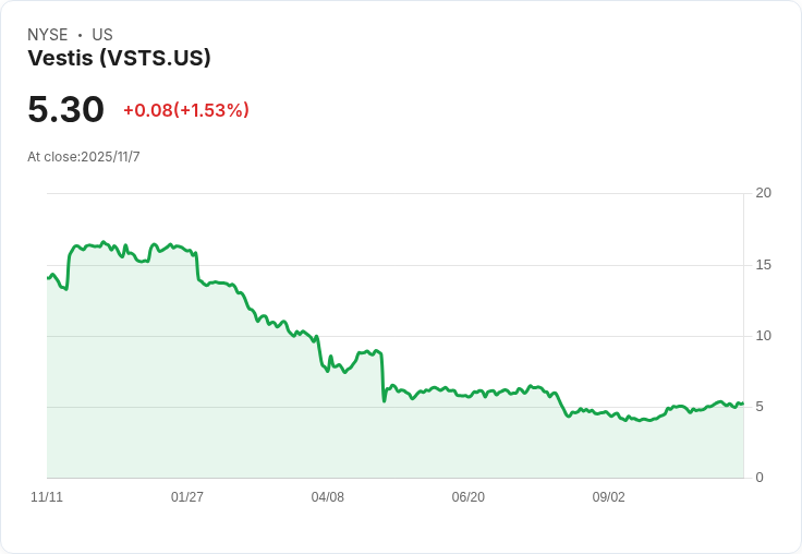 根據現金流折現模型,Vestis的內在價值為9.11美元,遠高於目前5.30美元的股價,顯示出被低估的可能性。