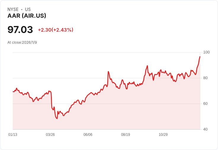 根據SEC提交的Form 4檔案,這筆交易的加權平均價格為每股97.05美元,略高於當日收盤價97.03美元。在過去的一年中,AAR Corp.的總回報達到了43.28%。該公司主要提供航空維修、零部件管理和工程服務,並且擁有穩定的收入來源。