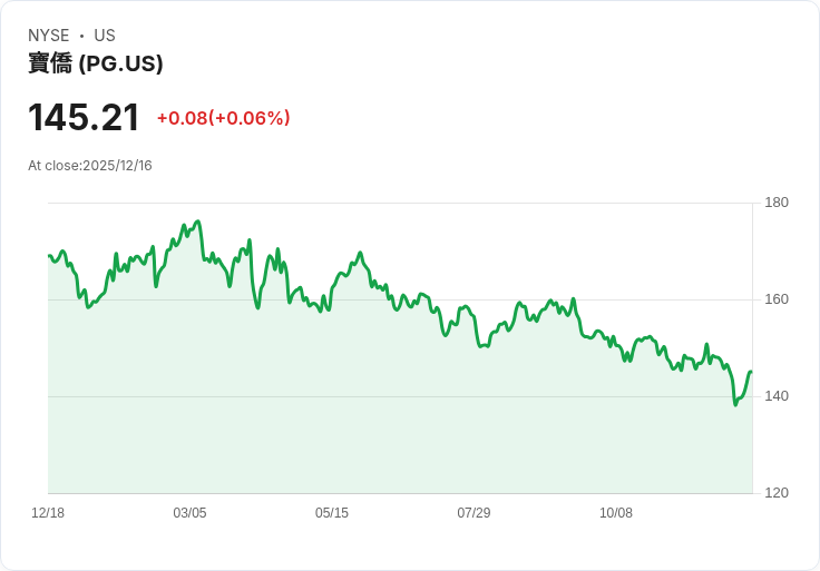 在近期的股市中,寶僑(PG)的表現引起了廣泛關注。該公司股價於週三小幅上漲1.7%,報147.60美元,這是它連續第七個交易日錄得上漲。儘管如此,寶僑今年以來的累計跌幅已超過12%,而同期標普500指數則上漲近16%。