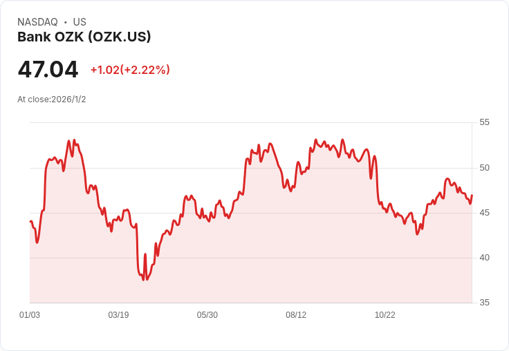 銀行OZK宣佈將季度股息提高至每股$0.46,顯示出穩定的財務表現。