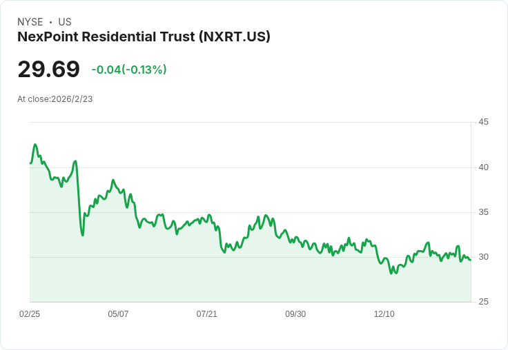 NexPoint Residential Trust, Inc.(NXRT)最近公佈了其 2025 年第四季的財務結果,顯示出淨虧損有所減少。首席財務官保羅·理查茲報告稱,該季度的凈虧損為 1030 萬美元,每稀釋後每股虧損 0.41 美元,與去年同期相比有所改善。此外,該公司還披露了 2026 年的初步指導,預計核心 FFO 每股收益介於 $2.42 至 $2.71 之間,表明對未來的謹慎樂觀。