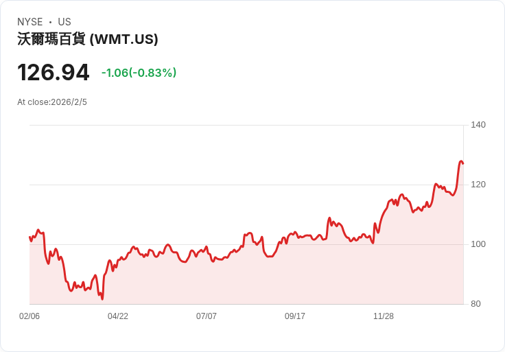 沃爾瑪(WMT)於2月3日成功突破一兆美元市值,成為全球少數幾家達到此里程碑的公司之一。該零售巨頭在競爭激烈的市場中,憑藉其規模優勢和穩定的價值主張,持續吸引消費者。在通脹高漲的背景下,沃爾瑪利用其大宗採購能力壓低價格,贏得了市場份額。此外,沃爾瑪也積極推動電子商務及訂閱服務,以增強營收。