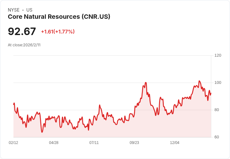 核心自然資源公佈第四季度財報,GAAP每股盈餘為-1.54美元,營收達到10.4億美元,並針對2026年提供了詳細指引。
