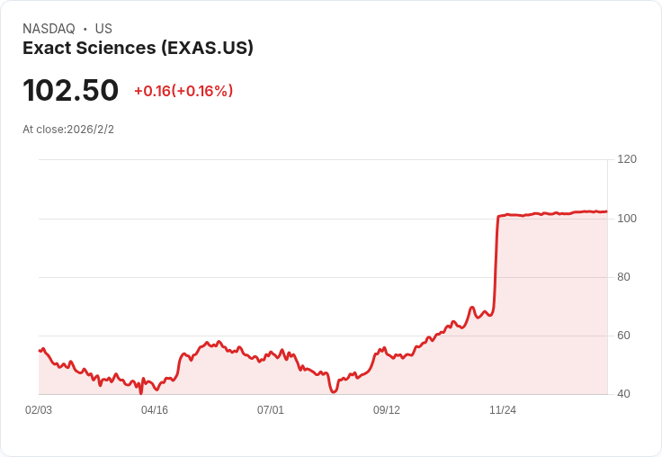 截至2026年2月2日,精準科學的股價為每股102.50美元,過去52週內股價上漲了87.21%。此外,該公司因商業團隊的重組和Abbott Laboratories宣佈以230億美元收購其股份,使得股價再度上揚,顯示出市場對其未來成長的信心。