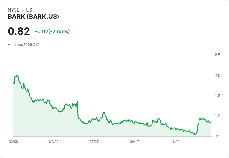 BARK公司(BARK)近日發布了其2026年第三季的財報,引起投資者關注。該公司報告顯示,非GAAP每股虧損為0.03元,雖然比預期好出0.01元,但總營收達到98.45百萬美元,同比下降22.1%,明顯低於市場預測的102.63百萬美元,缺口高達4.18百萬美元。