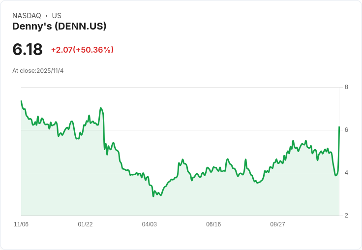 Denny's Corporation宣佈將被三家企業聯盟以約6.2億美元收購,計劃在2026年初完成交易。