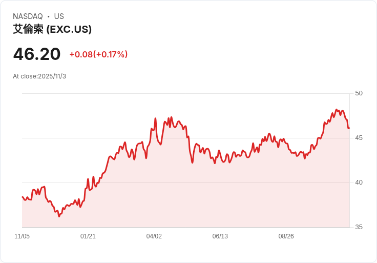Exelon Corporation是一家美國領先的能源供應商,專注於提供安全、可靠和可持續的電力服務。公司擁有多個公用事業子公司,致力於提升電網基礎設施和推動清潔能源解決方案。Exelon以其卓越的運營效率和客戶服務而聞名,並在行業中保持著高水平的可靠性和競爭力。