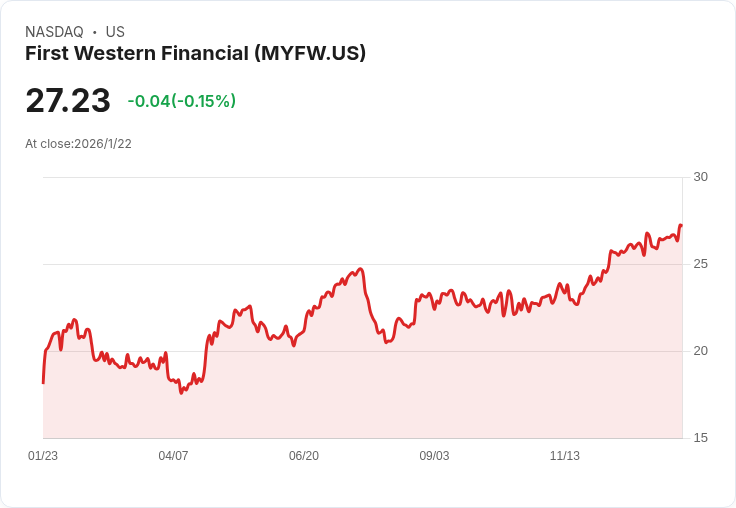在最新發布的財報中,第一西方金融(First Western Financial)公佈其第四季度的GAAP每股盈餘(EPS)為0.34美元,這一數字比市場預估少了0.09美元。儘管該公司營收達到2670萬美元,同比增長12.2%,但依然低於預期,差距為80萬美元。隨著業績公告後,第一西方金融的股票下跌了0.99%。
