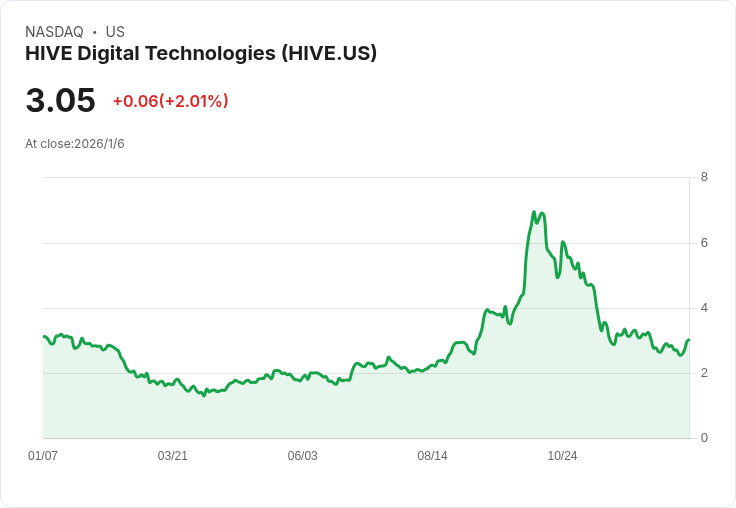 HIVE Digital Technologies在2025年12月的位元幣產量達306 BTC,較去年同期大幅成長197%,並計畫擴充套件可再生能源資料中心。