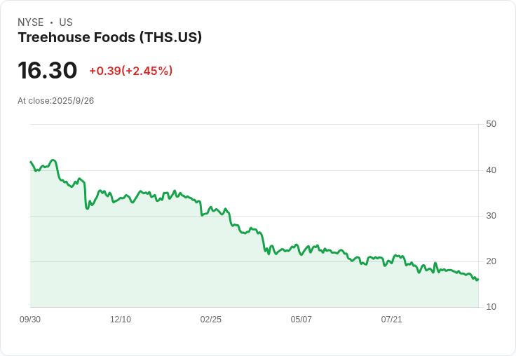 TreeHouse Foods 因傳出 Investindustrial 將提出約30億美元的收購報價,股價大漲14%。該訊息引發市場關注。