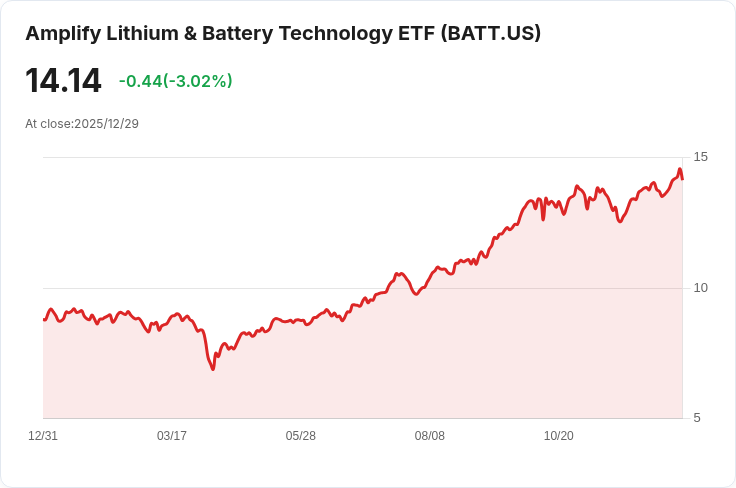 在全球能源轉型與電動車需求激增的背景下,Amplify鋰電池科技ETF (BATT) 近日宣佈,每股將支付$0.2555的年度股息,這一訊息吸引了廣泛關注。根據公告,此次股息將於12月31日支付,記錄日期為12月30日,而除息日同樣設在12月30日。