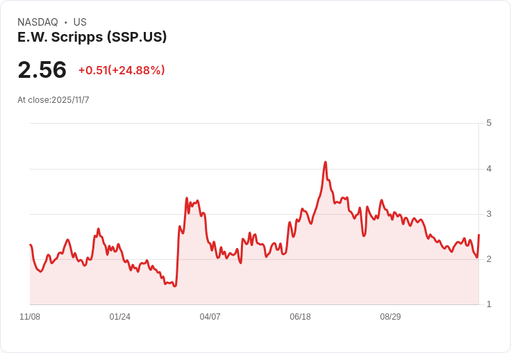 根據折現現金流模型分析,E.W. Scripps的內在價值預計為4.83美元,當前股價僅為2.56美元,顯示出47%的潛在低估。