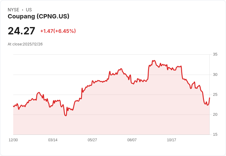 Coupang(CPNG)股價上漲2.84%,主要是因為公司宣佈將向3300萬名受重大資料洩漏影響的客戶支付超過10億美元的賠償。每位受害者將獲得最高50,000韓元(約35美元)的代金券,此計劃預定於2026年1月15日開始實施。經歷了一個波動月份後,該股票最近顯示出明顯的反彈,在最新交易會議中收盤上漲6.45%至24.27美元。