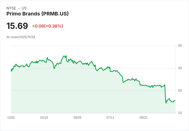 Primo Brands Corporation(NYSE:PRMB)近期受到市場關注,因為Barclays的分析師Lauren Lieberman對該公司的未來展望表示擔憂。她指出,由於公司退出率和收入組合的變化,Primo的直送業務在2026年可能會面臨比之前預期更大的挑戰。儘管如此,她仍維持了“超重”評級,但將目標價格從25美元下調至24美元。