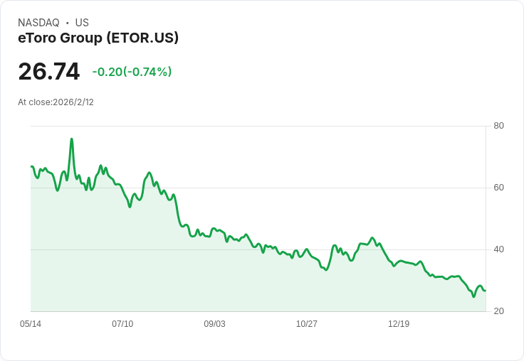 eToro集團(ETOR)將於2月17日公佈第四季財報,市場預測每股盈餘為0.60美元,收入達2.18億美元。