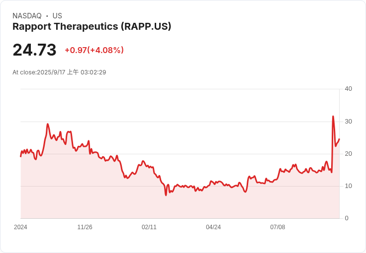 新聞: 在生技股市場中,Rapport Therapeutics (NASDAQ:RAPP) 近日因 Truist 發布的正面評級而受到廣泛關注。該機構對這家位於波士頓的生技公司給予了「買進」的建議,並設定了 $44 的目標價,主要基於其主導候選藥物 RAP-219 在最近的中期臨床試驗中表現出色。