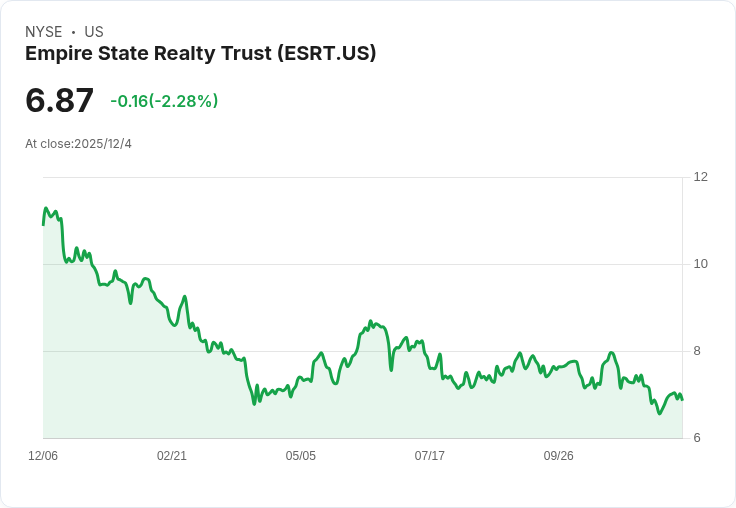 帝國州地產信託(Empire State Realty Trust, ESRT)近日宣佈將於12月31日支付每股$0.035的季度股息,此次股息與之前相同,顯示出公司在不穩定市場中的穩健表現。根據公告,該股息的記錄日期為12月15日,而除息日亦為同一天,這使得許多投資者能夠提前規劃其投資策略。