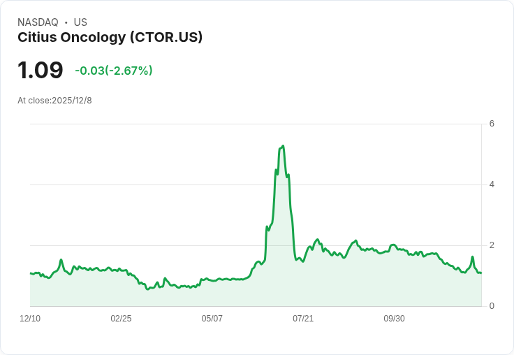 Citius Oncology(NASDAQ: CTOR)近日宣佈,其股票將在2025年12月22日正式納入羅素微型股指數。這一訊息本應為公司帶來正面影響,然而,市場反應卻出現意外的疲軟,CTOR的股價隨之下挫5%。