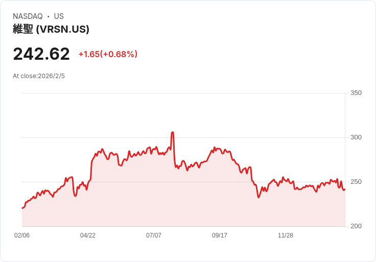 VeriSign, Inc.是一家專注於域名註冊和互聯網基礎設施服務的公司,負責管理.com和.net頂級域名系統。公司以其高可靠性的DNS服務聞名,已連續28年保持100%的服務交付記錄。VeriSign還提供安全技術解決方案,致力於提升網際網路的安全性和穩定性。